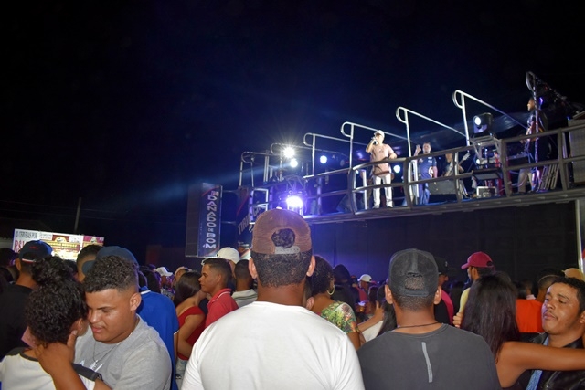 Quem também subiu no Mega Trio foi o Grupo Sem Segredos. Entre uma apresentação e outra, na gincana de moto, o público foi animado pelo som e o gingado de Tiago Batidão.