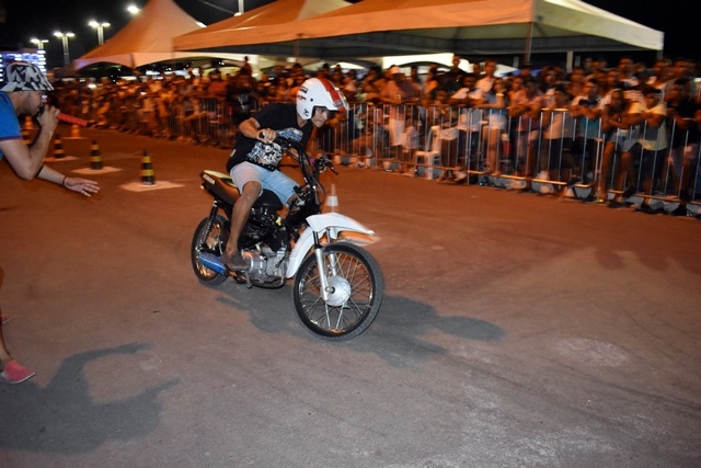 Também foi na pista de motos que o público acompanhou de pertinho a apresentação de várias manobras radicais por profissionais em duas rodas.