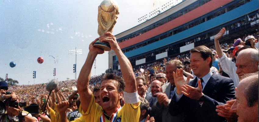 Neste ano, Dunga e companhia ergueram a taça de campeão do mundo, taça que seria a quarta do Brasil quebrando um jejum de 24 anos. A copa foi nos Estados Unidos.